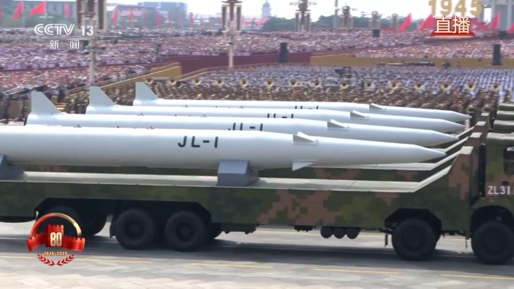 国之重器,压舱基石。受阅的“惊雷-1”空基远程导弹,“巨浪-3”潜射洲际导弹,“东风-61”陆基洲际导弹,“东风-31”新型陆基洲际导弹,首次集中展示我军陆、海、空基“三位一体”战略核力量,是维护国家主权、捍卫民族尊严的战略“王牌”。