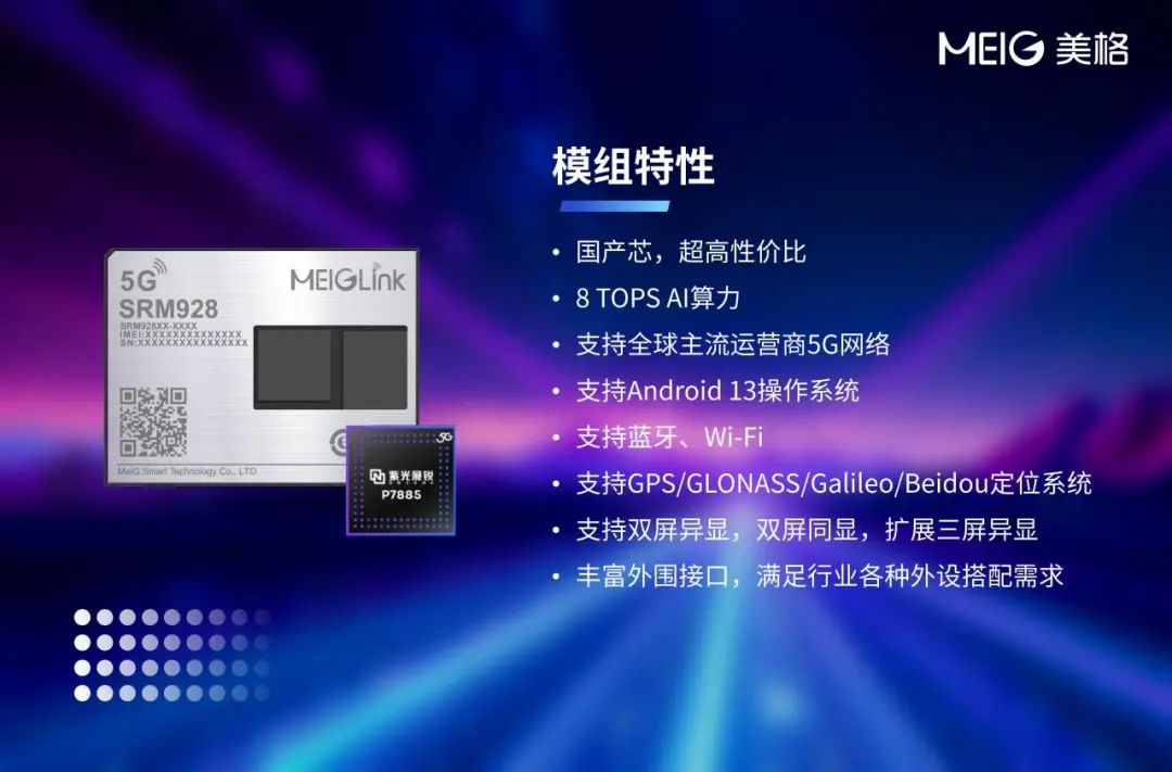 近日,美格智能(002881)携手世界领先的平台型芯片设计企业紫光展锐,共同发布了基于P7885平台开发设计的全国产化5G智能模组SRM928,具备出色的综合性能及国产化优势,为众多智能物联网终端提供高效稳定的智能核心。